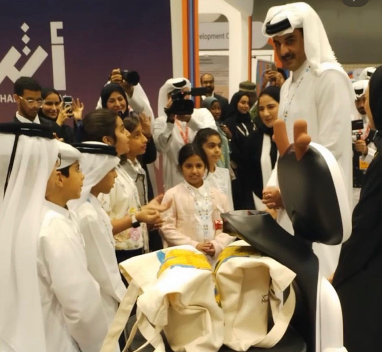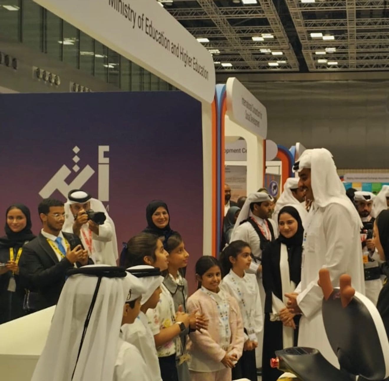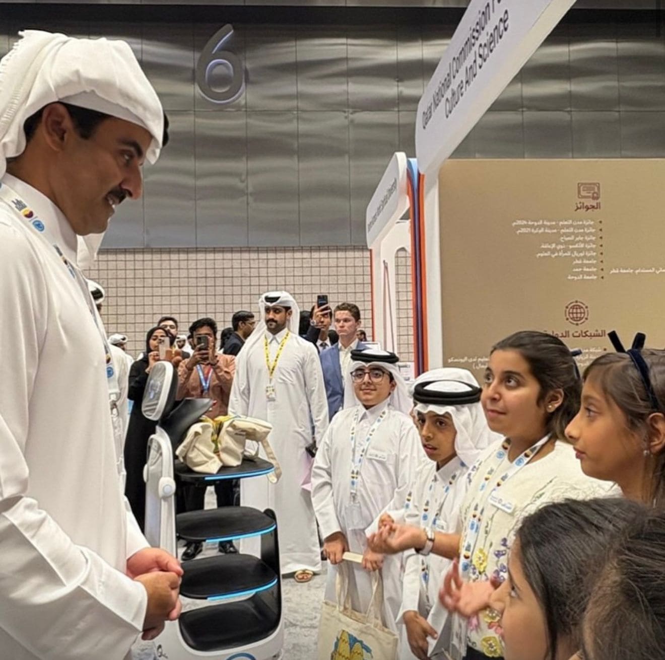 It was a distinct honor to welcome His Highness Sheikh Tamim bin Hamad Al-Thani, the Emir of Qatar, along with members of the royal family, including Sheikha, daughter of Hamad Al-Thani, and distinguished officials such as Mrs. Lolwa Al-Khater, Minister of Education and Higher Education, during their visit to the pavilion of the Ministry of Education and Higher Education.